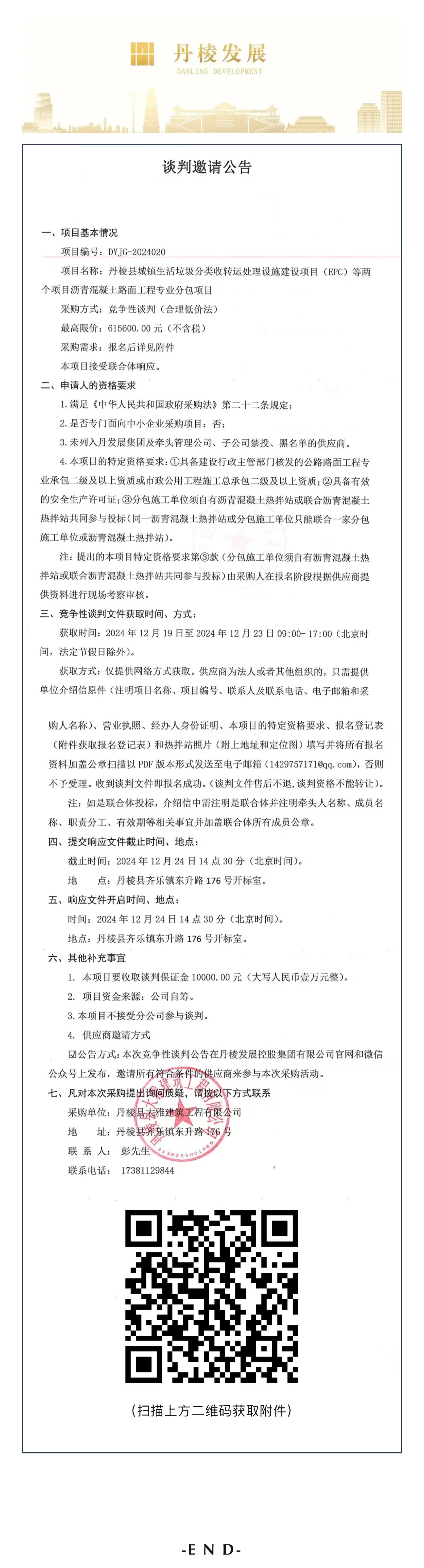 丹棱縣城鎮(zhèn)生活垃圾分類收轉(zhuǎn)運(yùn)處理設(shè)施建設(shè)項(xiàng)目(EPC)等兩個項(xiàng)目瀝青混凝土路面工程專業(yè)分包項(xiàng)目談判邀請公告