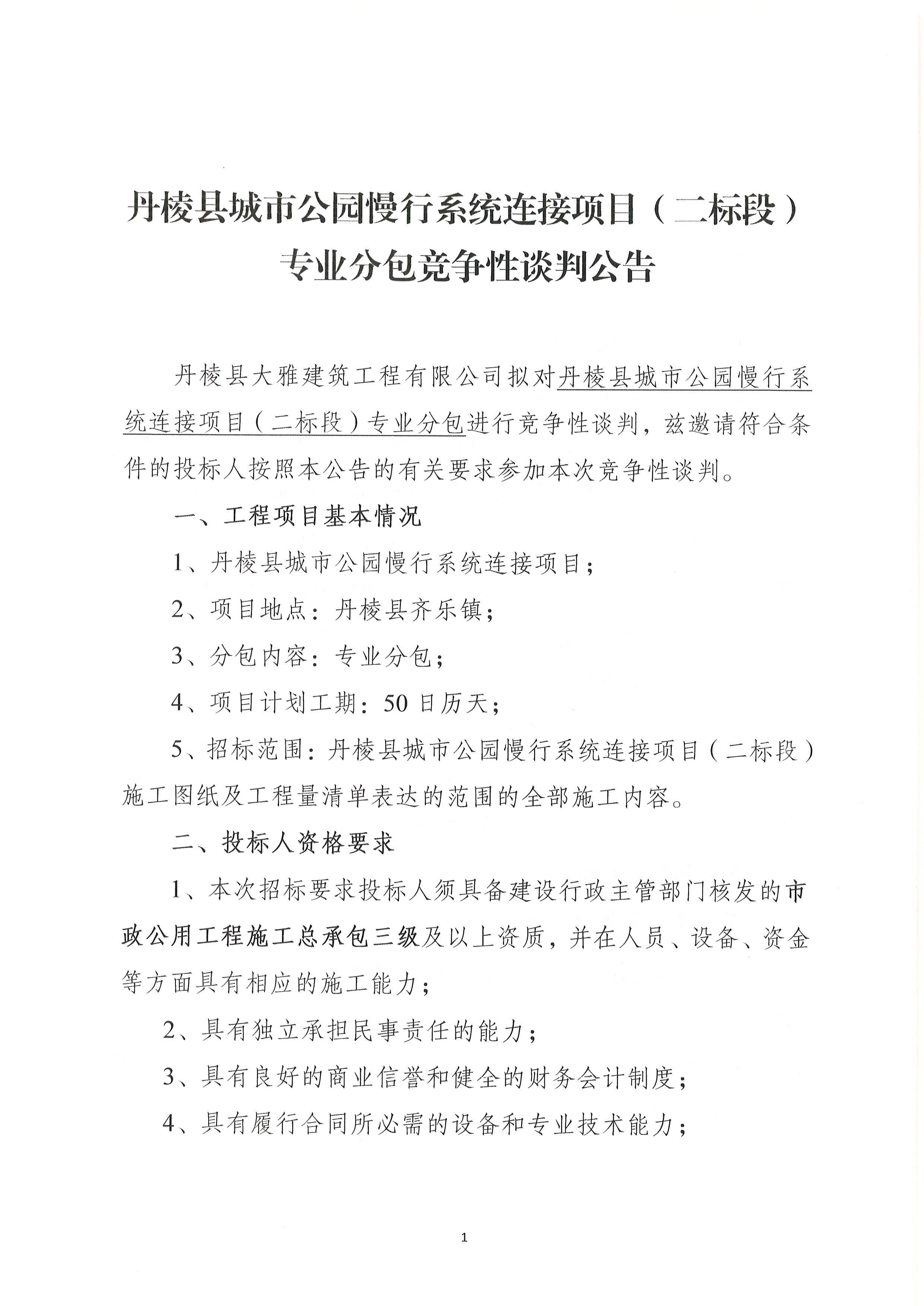 【大雅建筑公司】丹棱縣城市公園慢行系統(tǒng)連接項(xiàng)目(二標(biāo)段)專業(yè)分包競(jìng)爭(zhēng)性談判公告
