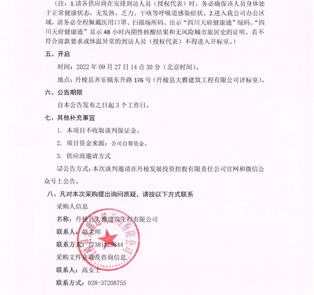 丹棱縣 2020 年、2021年及2022年批次老舊小區(qū)城市燃?xì)夤芫W(wǎng)老化更新改造項(xiàng)目燃?xì)夤芫W(wǎng)改造專(zhuān)業(yè)分包項(xiàng)目談判邀請(qǐng)公告