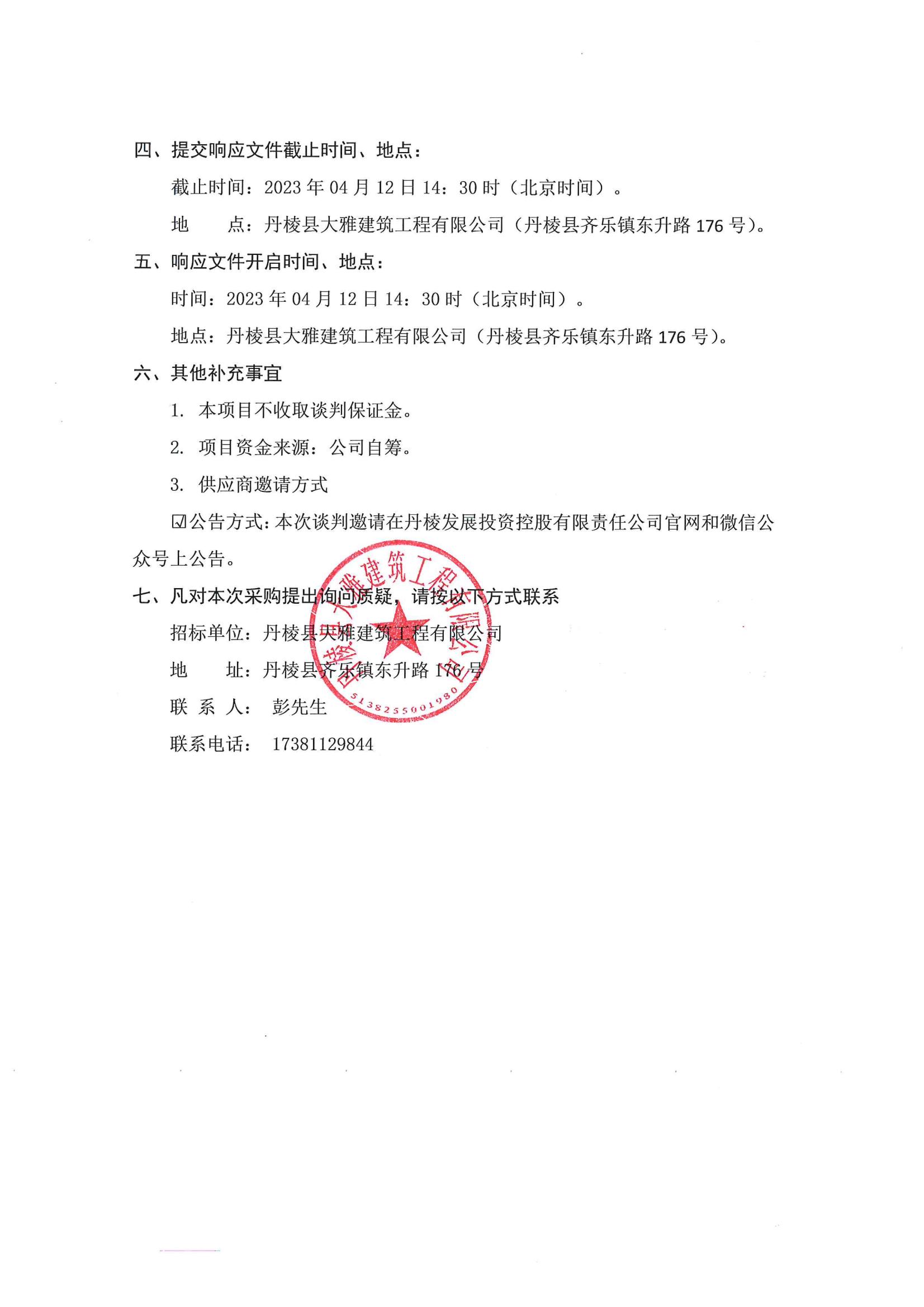 丹棱縣食品園區(qū)建設(shè)項目(一期)--標(biāo)準(zhǔn)化廠房一標(biāo)段(EPC)電梯采購及安裝采購項目談判邀請公告