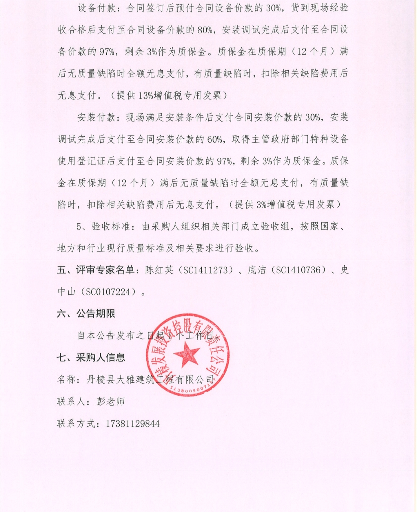 丹梭縣食品園區(qū)建設(shè)項目 (一期) --丹棱凍粑產(chǎn)業(yè)園建設(shè)項目設(shè)計、施工、采購總承包 (EPC)電梯采購及安裝采購項目 (第二次)成交結(jié)果公告