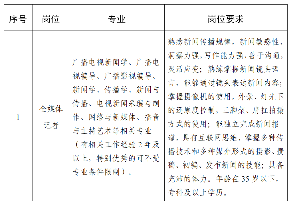 因業(yè)務(wù)發(fā)展需要,丹棱縣融媒體中心委托丹棱縣大雅家園勞務(wù)服務(wù)有限公司面向社會公開招聘全媒體記者1名,具體內(nèi)容如下: