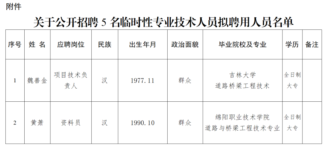 附件:關(guān)于公開(kāi)招聘5名臨時(shí)性專(zhuān)業(yè)技術(shù)人員擬聘用人員名單