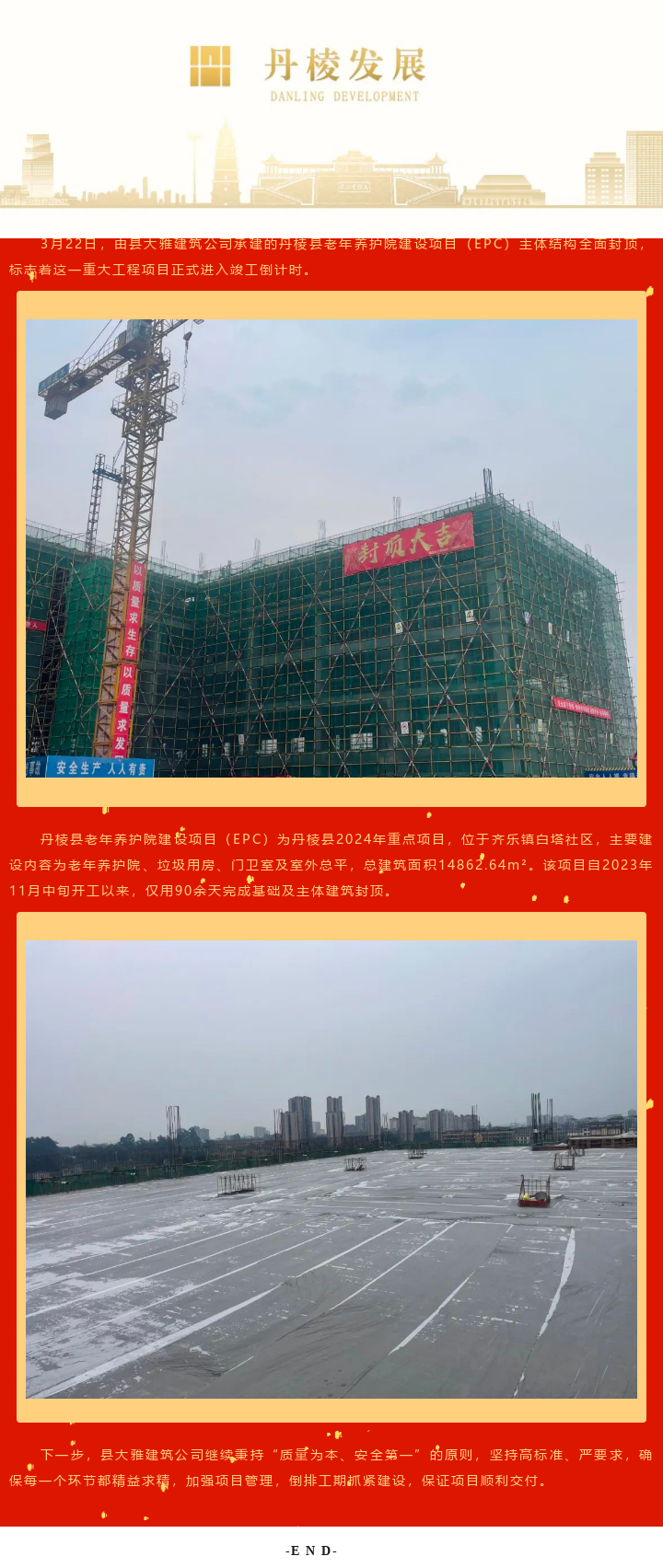 【縣大雅建筑公司】扎實(shí)推進(jìn)“民心工程”,丹棱縣老年養(yǎng)護(hù)院項(xiàng)目順利封頂