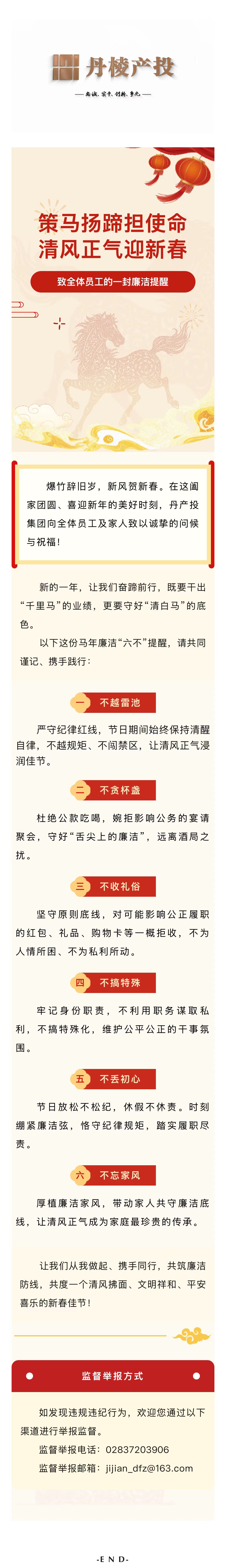【節(jié)日紀(jì)語(yǔ)】策馬揚(yáng)蹄擔(dān)使命 清風(fēng)正氣迎新春——致全體員工的一封廉潔提醒